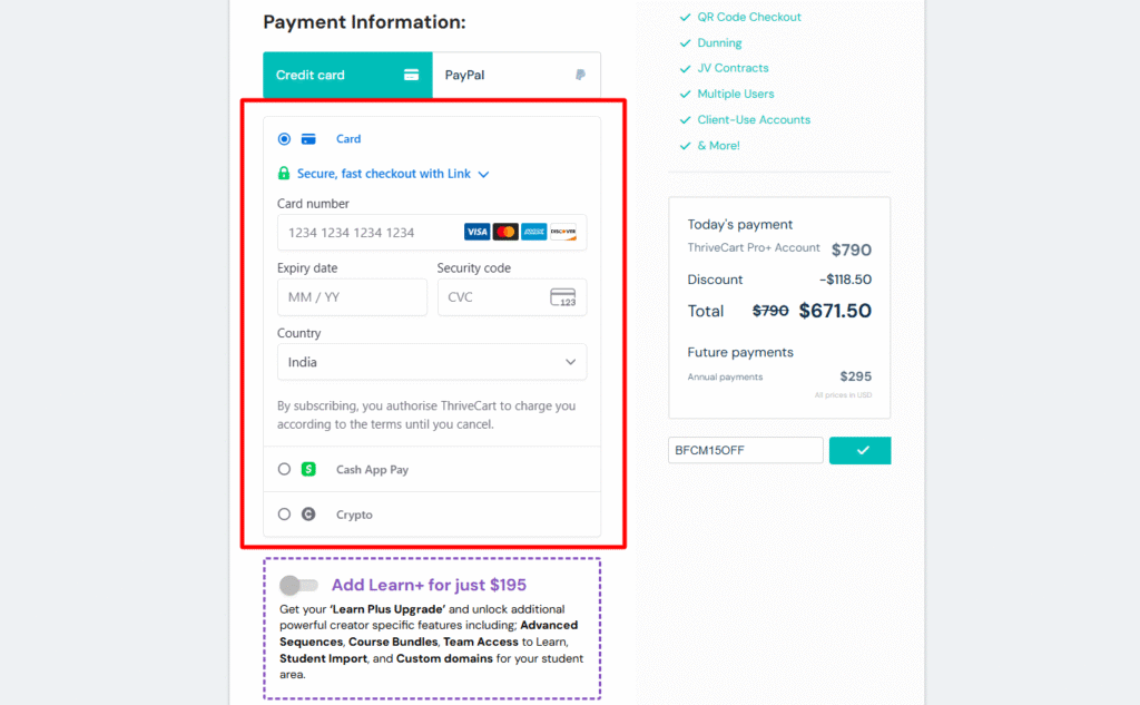 Step 5: Complete checkout and start using ThriveCart at the discounted price.